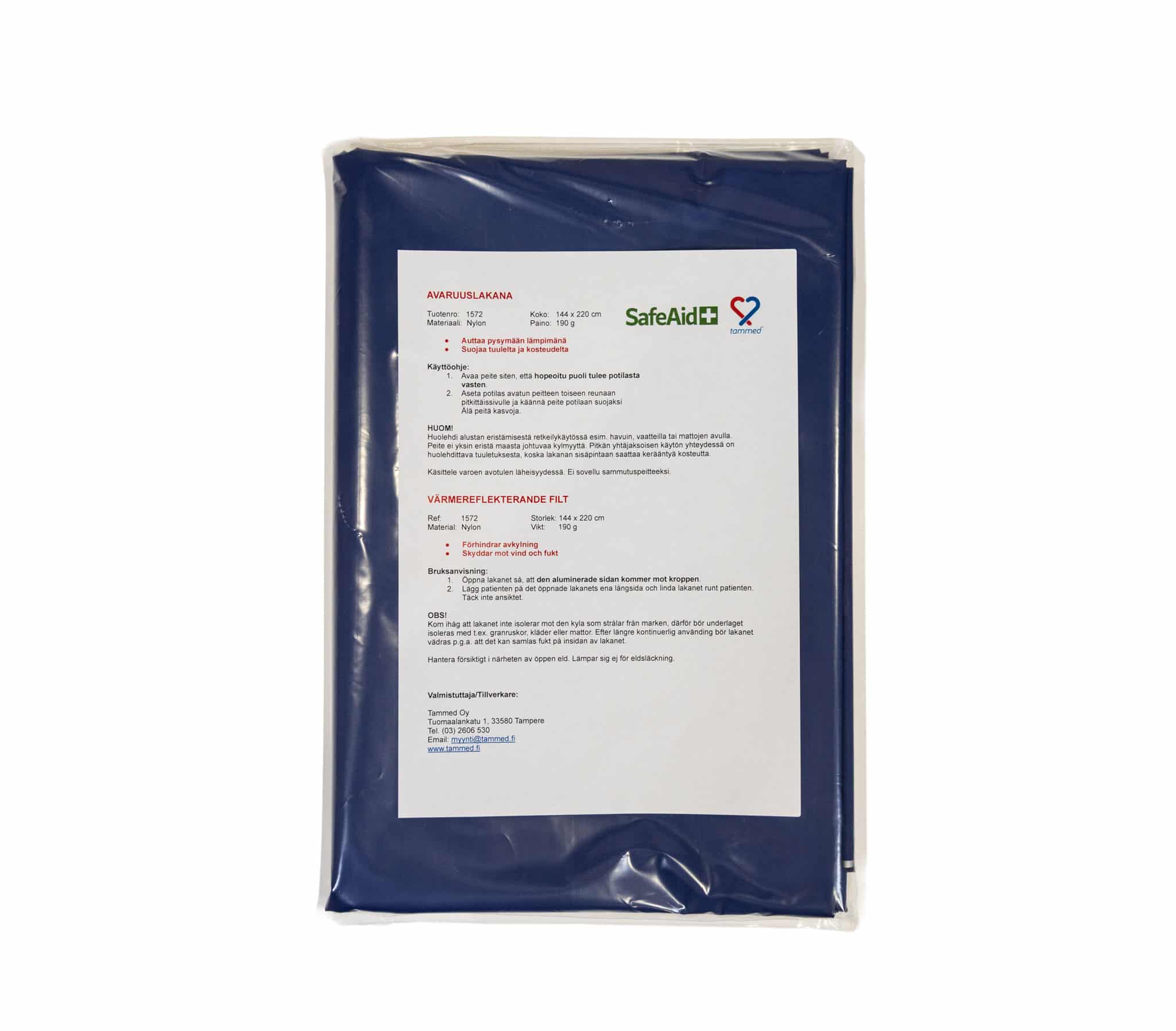 Tammedin avaruuslakana (pelastuslakana tai avaruuspeite) on valmistettu aluminisoidusta muovista, jolloin se auttaa potilasta pysymään lämpimänä suojaten tuulelta ja kosteudelta. Pelastuspeite on ulkopuolelta sininen ja sisäpuoleltaan alumiinisen hopean värinen, joten se näkyy kauas esimerkiksi maastossa.